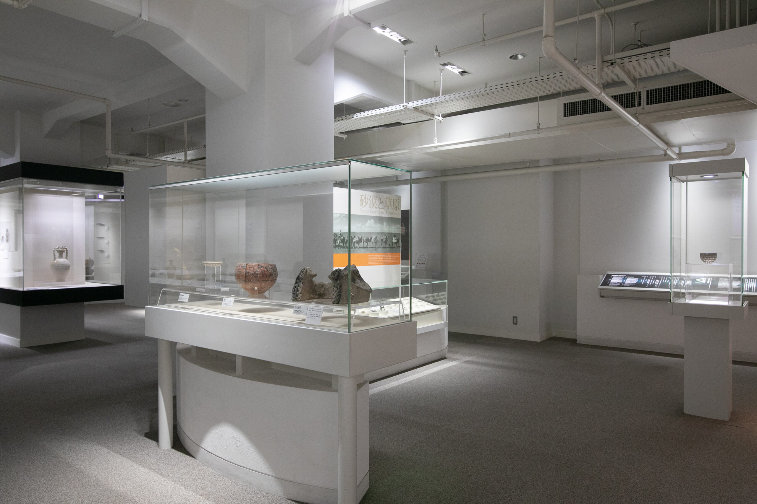 ユーラシア各地の文化を伝えるさまざまな資料を「砂漠と草原」「色と形」「技」「装う」「伝える」「交流」のコーナーに分けて展示しています。現在の展示資料数は約250点です。