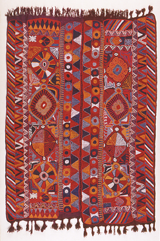装う Highlights from “Adornment” 私たちは単に服を着るだけでなく、デザインや飾りを選び、装うことで自分を表現しています。ユーラシアの民族衣装は、地域・気候・宗教・風習による違いがあり、表情豊かに文化を伝えています。それぞれの伝統の中で特に大切に受け継がれているのは、結婚している女性の服装や装身具です。装身具は美しいだけでなく、魔除けの意味が込められているものも多くあります。 苗族女性用上衣 女児用帽子 女性用上衣 女性用被り物 袖無貫頭型上衣 動植物文敷物 髪飾り