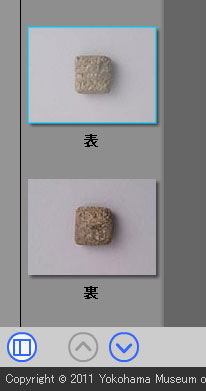 - 左下に「一覧」ボタンがあります。画像の一覧をサムネイル画像のリストで表示します。この中には閲覧可能な全画像が表示されます。初期状態で開いています。