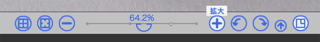- コントロールの+、-ボタンで拡大、縮小します。画像サイズ100%を基にして2倍、1/2倍の固定倍率です。