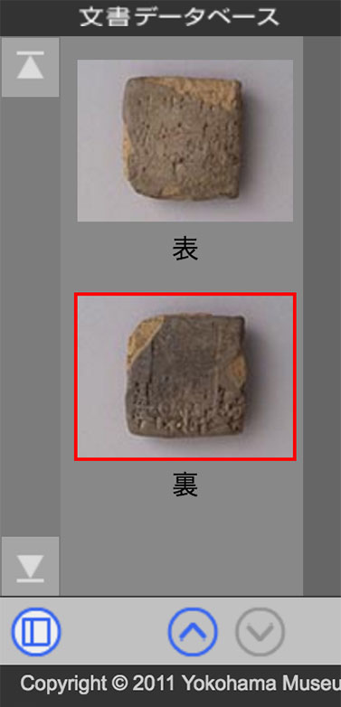 - 左下に「一覧」ボタンがあります。画像の一覧をサムネイル画像のリストで表示します。この中には閲覧可能な全画像が表示されます。初期状態でオン・オフは設定に依ります。