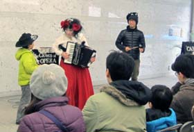 音楽的道化師のみぎわさんによるアコーディオンとオペラで綴る道化芝居。会場のお客様も参加され大いに盛り上がりました。