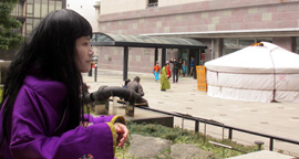 モンゴルの民族衣装でポーズ。