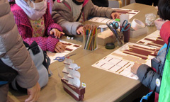 ちなみペーパークラフトで帆船作り。