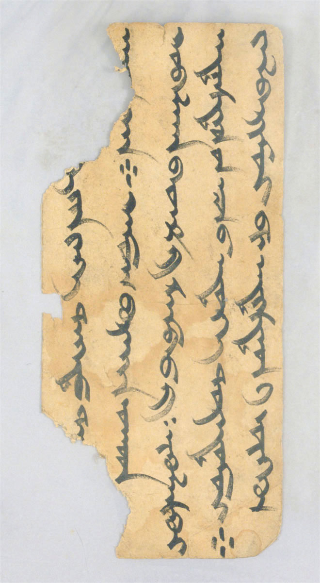 e-yin yeke degedü tn[gri] / / / (2) ne[rün] qan. qamuγ burqan nuγud (3) qubilγan badm-a sambau-a ∣-∣nigülesküi (4) adistid-un ejen-ü edüge duradumui. (5) jalbarimui bi adistad-i öggün
