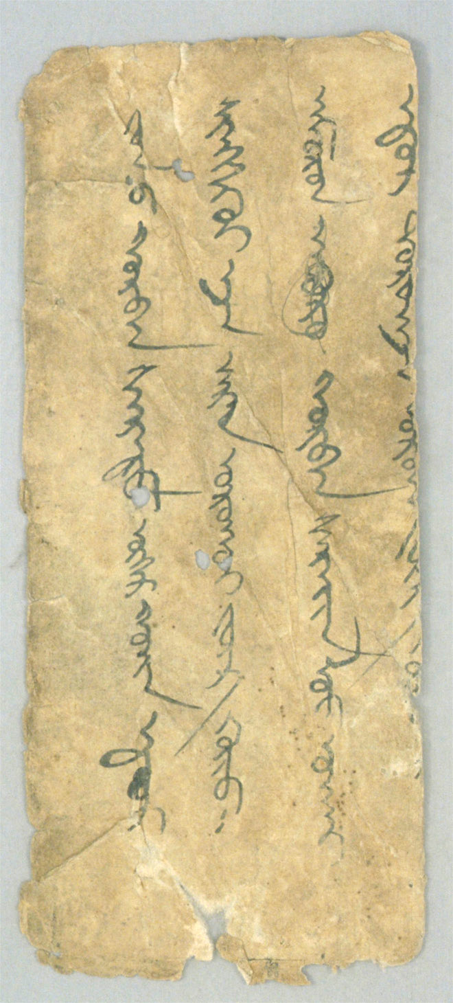 (1) yosu γurban saradu üker qonin edür (2) singgeküi-eče naran oroqui jüg güyü. (3) namurun / / / γurban sarayin luu noqai (4) edür doronača oron[a] jüg g[üyü]